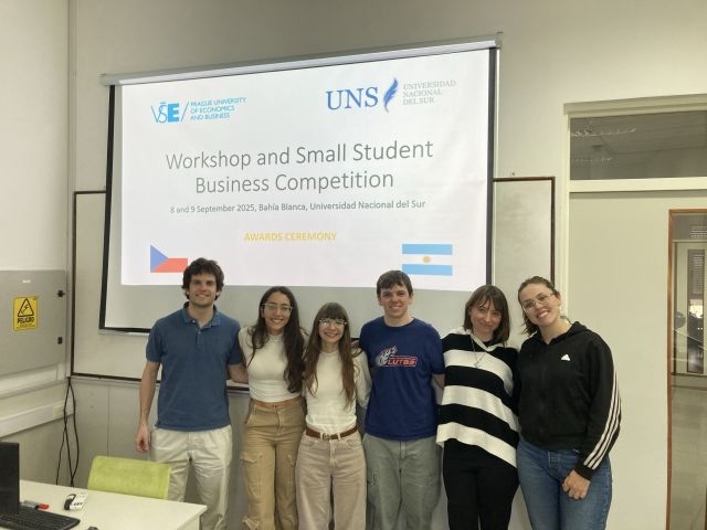 The Department of International Business is pleased to share that on 8 and 9 September 2025, a member of the department organised a small-scale student business competition for students at the Universidad Nacional del Sur in Bahía Blanca, Argentina. This event was an adapted version of the mysterious business competition first held at the Prague University of Economics and Business in November 2023. The pilot competition later evolved into a larger-scale event, held in January 2025 in Slovakia, with the support of the Visegrad Fund (see here).